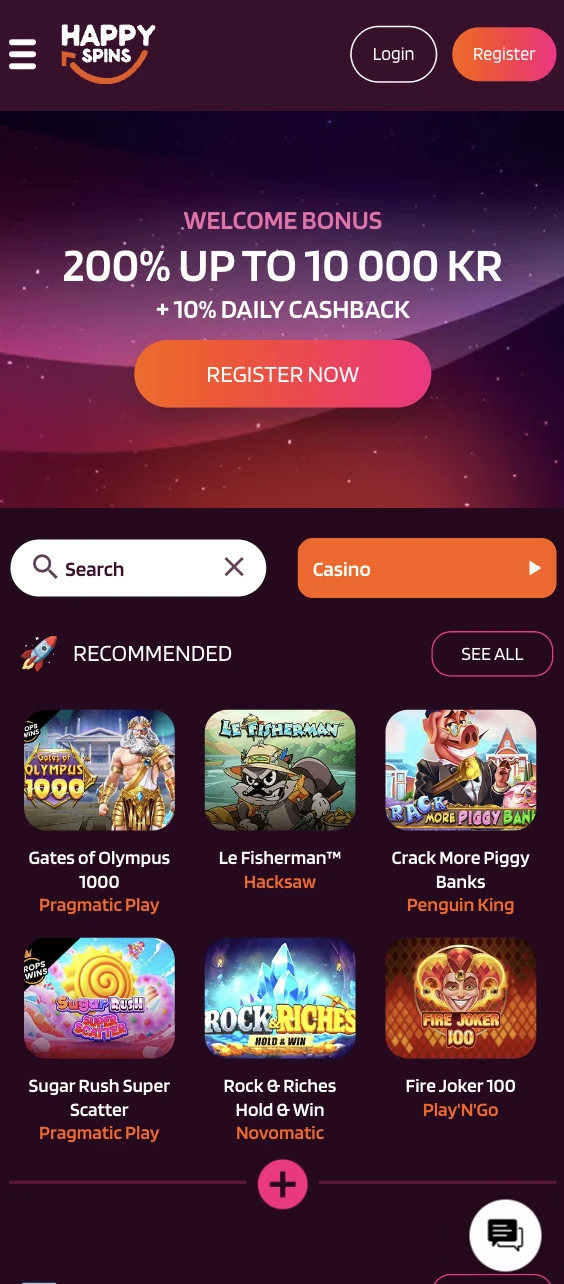 Ăr hela mobilcasinots spelbibliotek tillgĂ€ngligt? Ja, vĂ„r mobilversion i webblĂ€saren ger tillgĂ„ng till samma huvudkategorier, inklusive live dealer-bord och HappySpins slots. Du kan ocksĂ„ anvĂ€nda sök och filter, inklusive filtret för hög RTP, för att hitta spel snabbare.